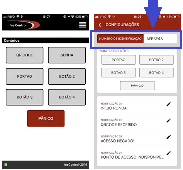 Dentro do aplicativo, em configurações, você vai encontrar o número de identificação composto por 7 letras/números.
